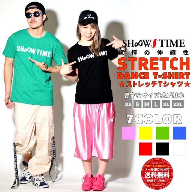 メール便送料無料 Tシャツ メンズ レディース 半袖 SHOOW TIME ショータイム ロゴプリント ストレッチTシャツ 運動 スポーツ ダンス ヨガ ジム フィットネス ランニング
