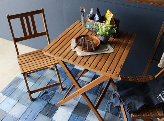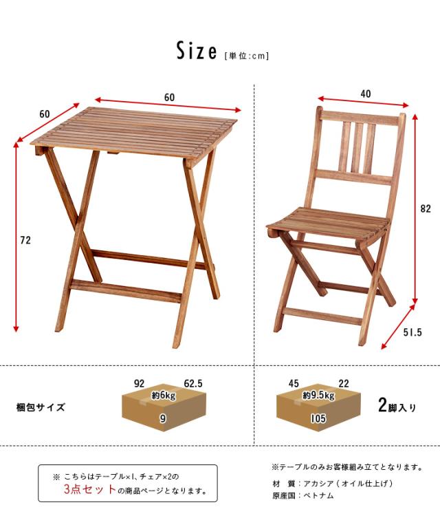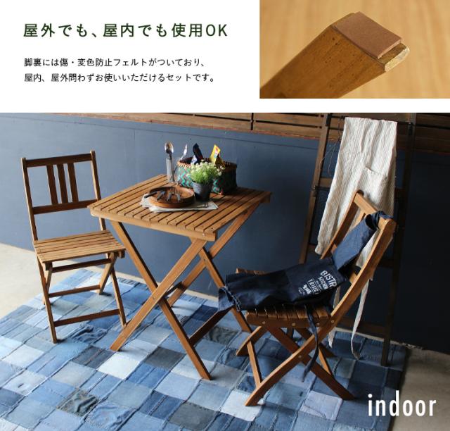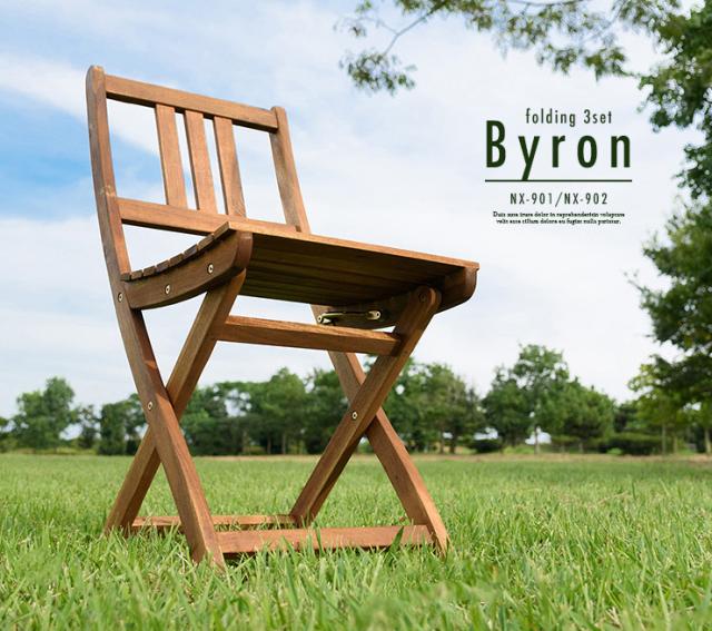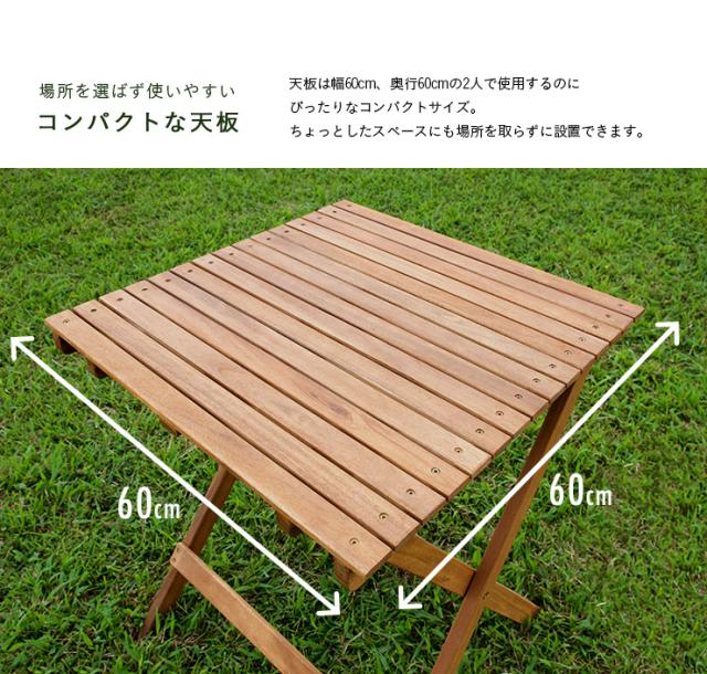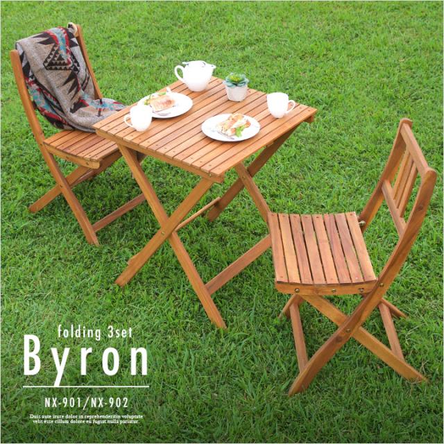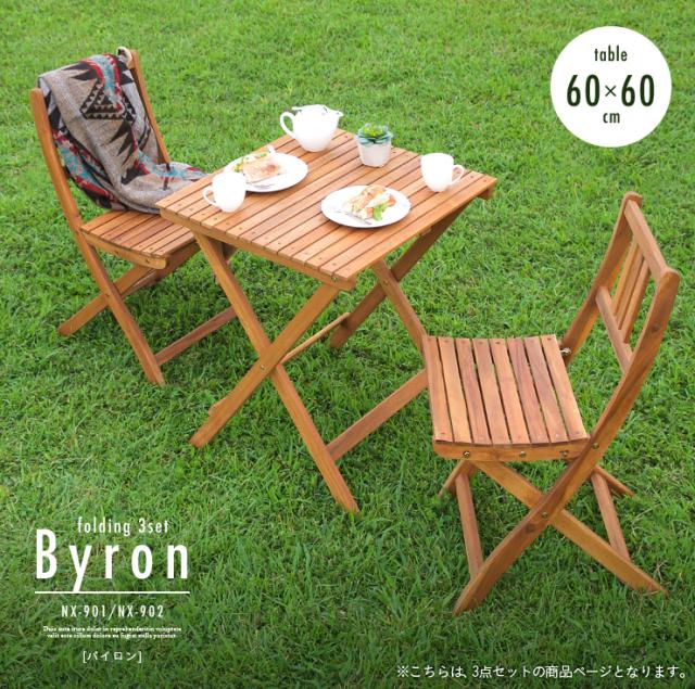 折りたたみテーブル & 折りたたみチェア 3点セット Byron(バイロン) 60x60cm NX-901/NX-902 ガーデンテーブル ガーデンチェア 木製テーブル 木製チェア ガーデンファニチャー ガーデンファニチャーセット