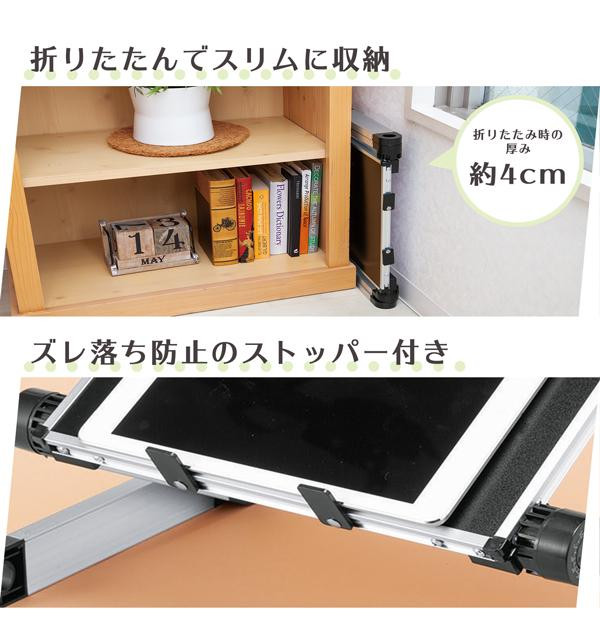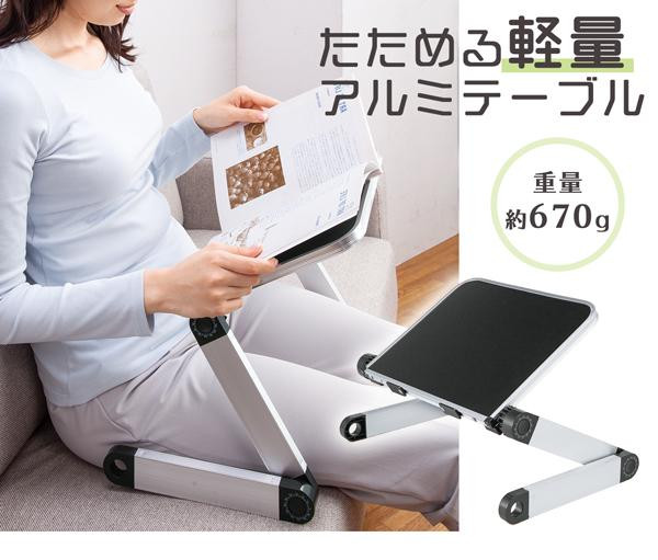 角度と高さを自由に変えられるミニテーブル。ベッドやソファなど、色々なシーンで使用できます。軽量で持ち運びもラクチン。折りたたみ時の厚みが約4cmと薄く、収納にも便利。 |