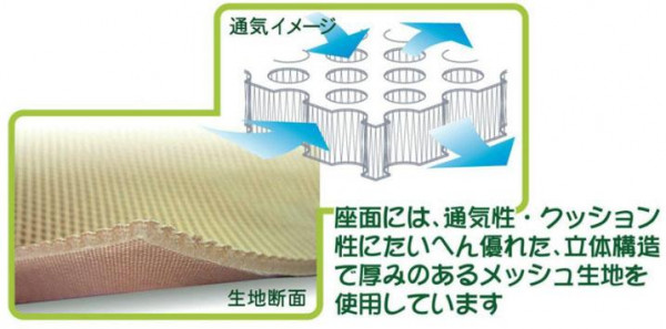 背もたれ・座面には通気性とクッション性に優れたダブルラッセル生地を使用しております。 |