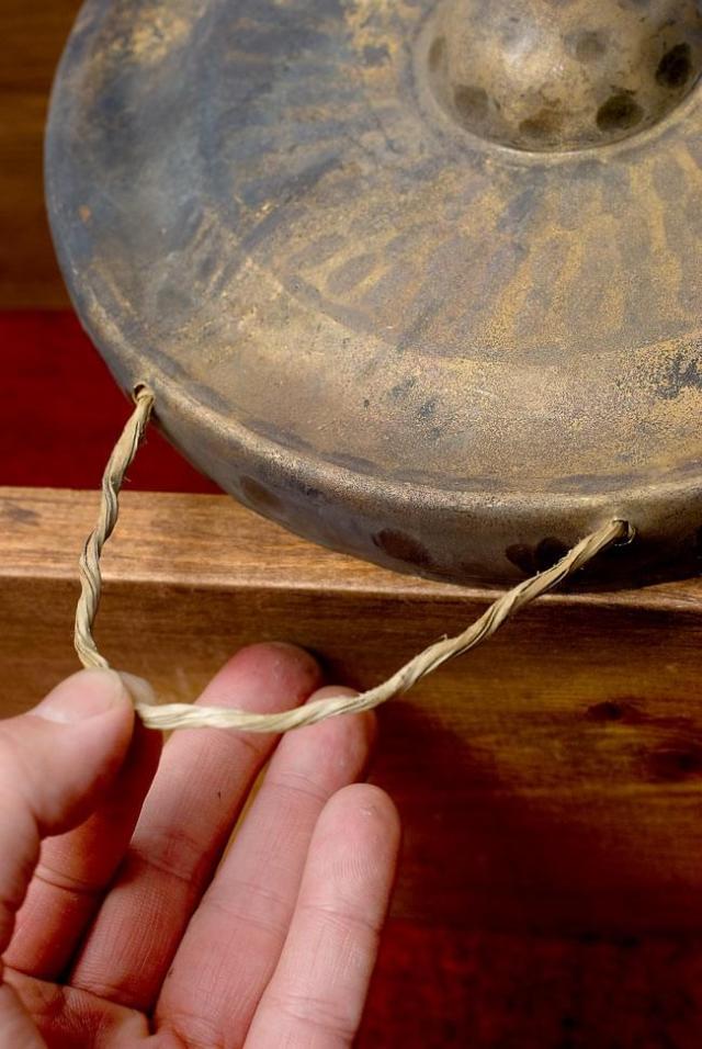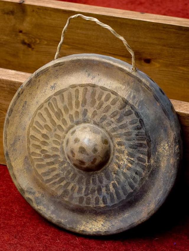 叩いてみるといわゆる銅鑼とは違い、派手な音ではなく落ち着いた音が響き渡ります。商品ページの写真下部の再生ボタンより、音のサンプルをお試し下さい。突起のあるタイプのものですと、突起の部分を叩くと澄んだ音が鳴ります。装飾も控え目ですので、楽器としてのみならず、トライバルなインテリアとしてもお使い頂けます。■ベトナムではこのように演奏します