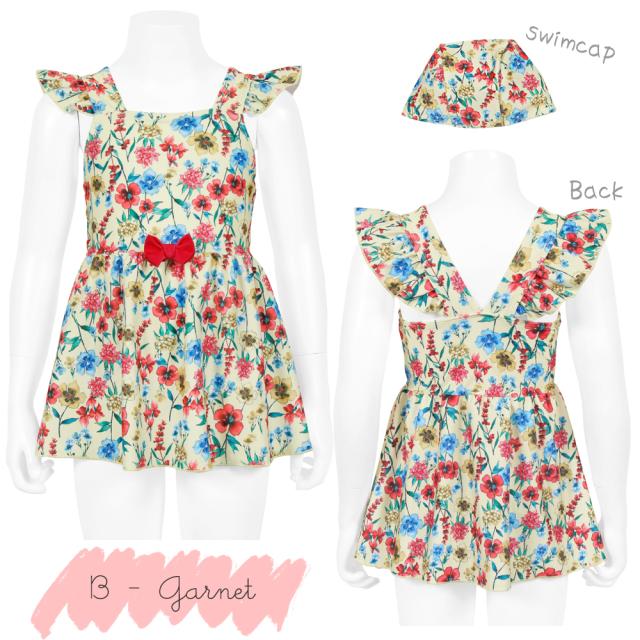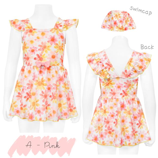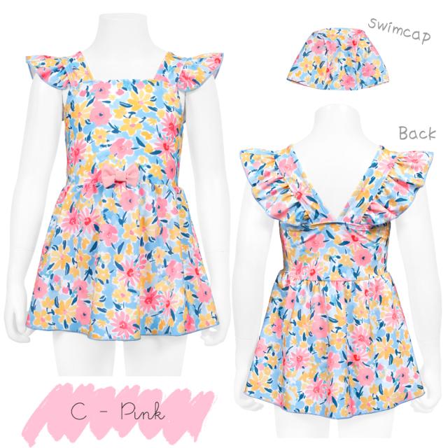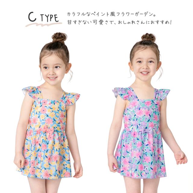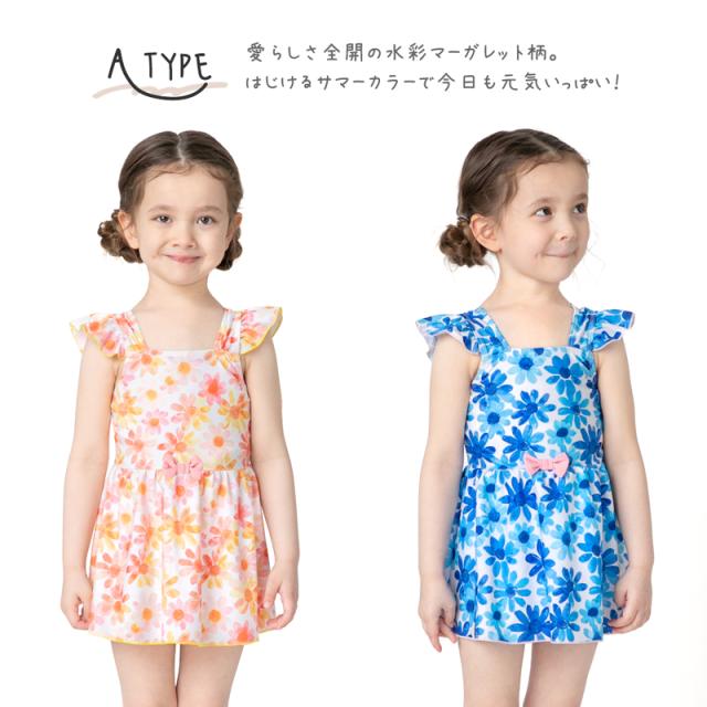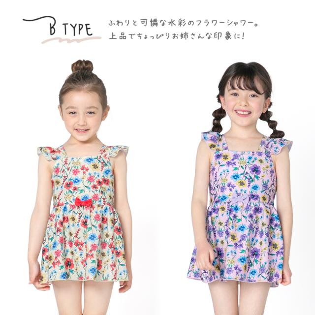 商品カテゴリ : 子ども 女の子 キッズ 子供 水着 ワンピース スカート 可愛い お洒落 パステル 花柄 水彩 カラフル