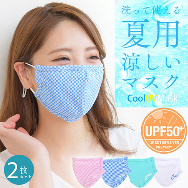 全品送料無料一部除く セール クールマスク ma UVマスク 夏用 2枚セット 【即納】 冷感マスク ひんやりマスク UPF50+ PixyParty 洗える 3サイズ 涼しい