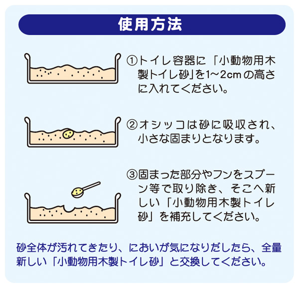 | 商品説明 | ●天然のヒノキ入り ●固めて流せる小動物用木製トイレ砂 ●優れた消臭力で悪臭を取り除く ●しっかり固まるのでお掃除カンタン ●おがくずが原料だから安全・安心 ●トイレに流したり、燃えるゴミとして処理も可能 ●おがくずを活用した環境に優しい商品 |