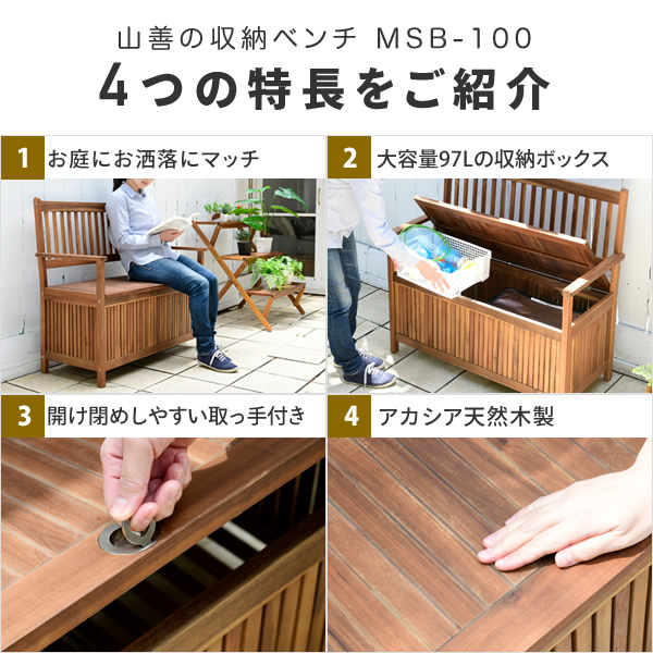 天然木製 収納ガーデンベンチ 幅100タイプ MSB-100 おしゃれ パークベンチ ベンチ型収納BOX 収納庫 山善 YAMAZEN 【送料無料】