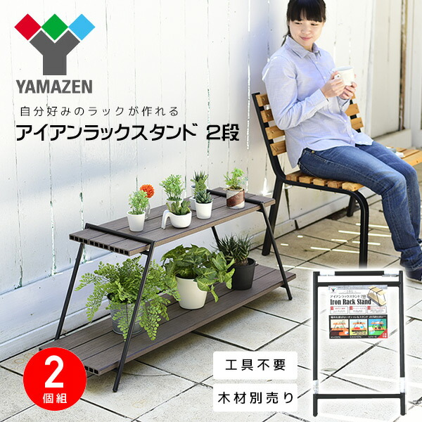 アイアンラック 2段 (木材別売り) 2個組 IRS-2(2)*2 ブラック アイアンレッグラック ディスプレイラック キャンプ アウトドア お庭 山善 YAMAZEN 【送料無料】