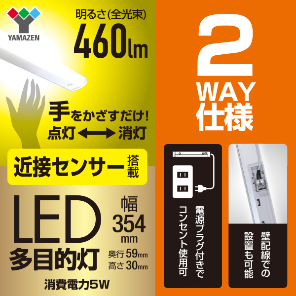 お得な12個セット LED多目的灯 LEDキッチンライト 近接センサ付 460lm (幅35.4cm) LT-C05N LEDバーライト キッチンライト キッチン灯 流し元灯 LEDライト 近接センサー 蛍光灯 照明器具 工事不要 12個組 山善 YAMAZEN 【送料無料】
