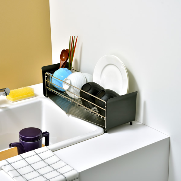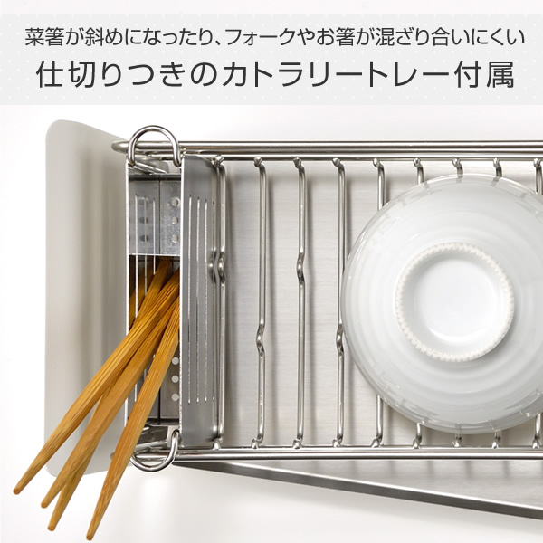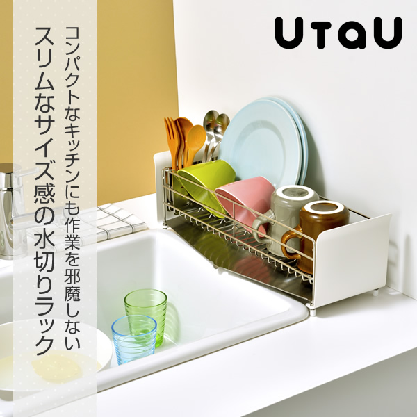 水切りラック スリム カトラリースタンド付き 水切りカゴ ステンレス 水切り 水が流れる シンク上 省スペース おしゃれ シンプル カフェ風 ナチュラル モノトーン UtaU(ウタウ) 【送料無料】