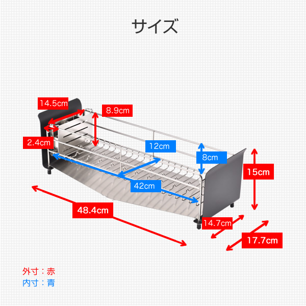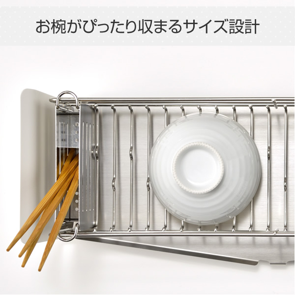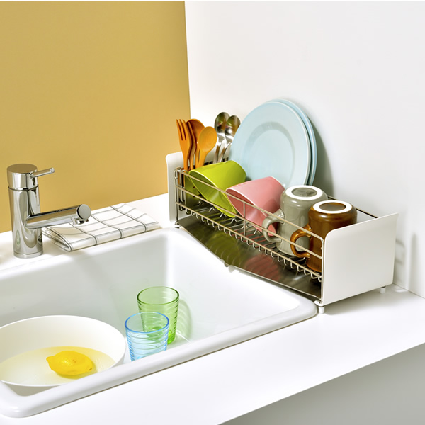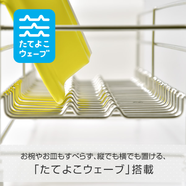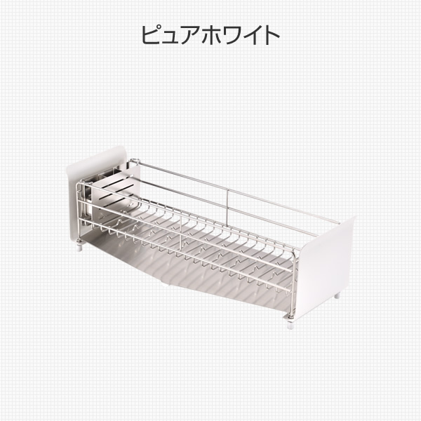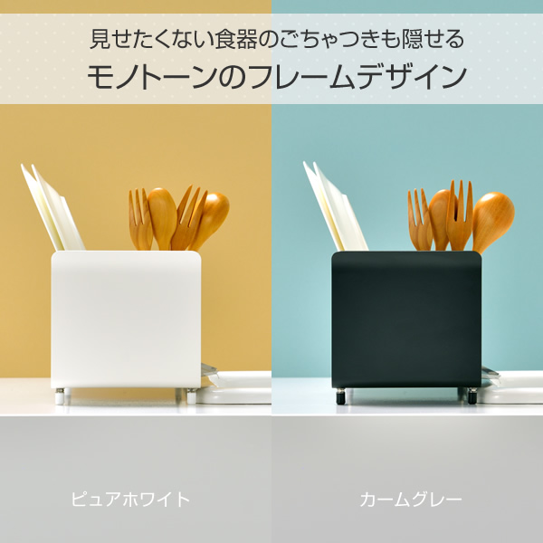 | 商品説明 | ●お皿を洗いながら思わず「うた」を口ずさんでしまうようなお洒落で機能的な水切りラック ●コンパクトなキッチンにも作業を邪魔しないスリムなサイズ感 ●お椀やお皿もすべらず、縦でも横でも置ける、たてよこウェーブ搭載 ●傾斜と排水口は水がよりスッキリと流れるように設計された水受けトレー ●4本の脚はアジャスター付き、シンク淵の段差で高さが変わっても調整可能 ●菜箸が斜めになったり、フォークやお箸が混ざり合ったりしにくい、仕切りつきのカトラリートレー付属 ●見せたくない食器のごちゃつきも隠せる、モノトーンのフレームデザイン ●お椀がぴったり収まるサイズ設計 ●かご内寸:幅12 奥行42 深さ8cm ●カトラリートレー外寸:幅14.5 奥行2.4 高さ8.9cm ●カトラリートレー内寸:幅10.6 奥行2.2 深さ6.4cm |