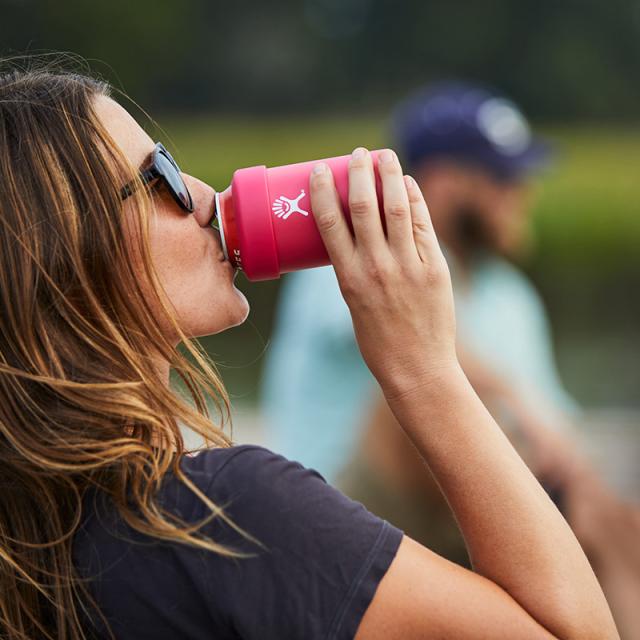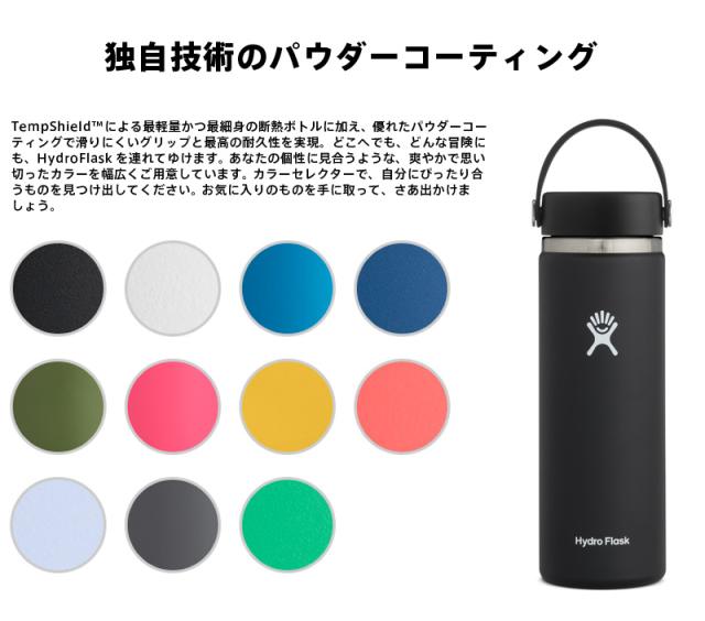 HydroFlaskは温度を最大限保つために二重壁真空断熱技術(TempShield?)をすべての製品に採用しています。さらに底部には、特許取得の独自技術により確実な真空を生み出すことによって、従来の重厚な蓋が不必要となり軽量化に成功しました。保冷は最大24時間、保温は最大6時間、さらにボトルの外側が結露したり、熱すぎて持てないということもありません。内部には強度と純度が広く認められている18/8プログレードステンレス鋼を採用しているので、味移りも防ぎます。350ml缶や瓶を入れてドリンクホルダーとして使うときは、シリコンスリーブを上にあげて固定できます。カップとして使うときは、シリコンスリーブを下につければ傷防止や滑り止めになります。人体への悪影響を及ぼす可能性のある化合物ビスフェノールA不使用のBPA FREEですので、安心してご使用いただけます。