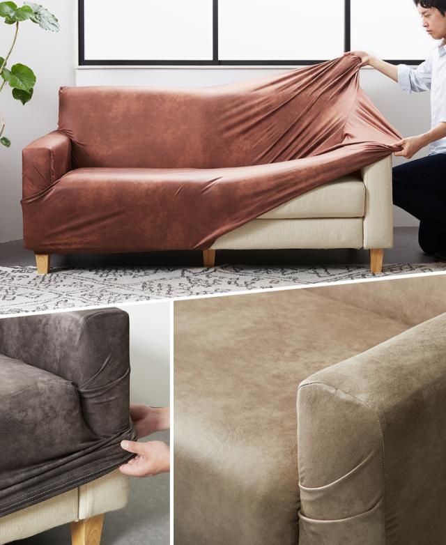ソファーカバー 2人掛け用 レザー調 肘あり 肘付き 北欧 おしゃれ 洗える ウォッシャブル キズ防止 汚れ防止 ソファー保護 伸縮素材 ストレッチ ズレない 合皮 合成皮革 レザー ソファ ソファー カバー【送料無料】