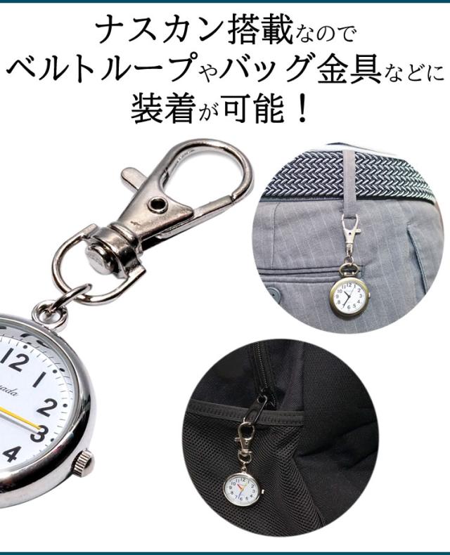 ナースウォッチ 時計 逆さ時計 シンプル ナスカン メンズ レディース リュック バッグ ワンポイント