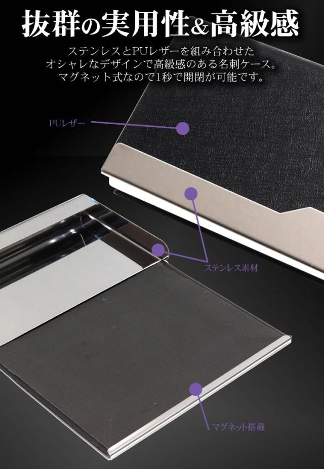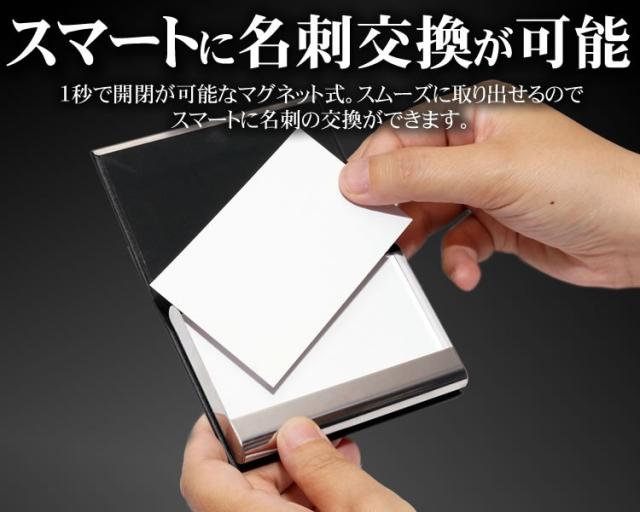 ハードケース 名刺入れ マグネット式 PUレザー ステンレス 1秒開閉 メンズ レディース