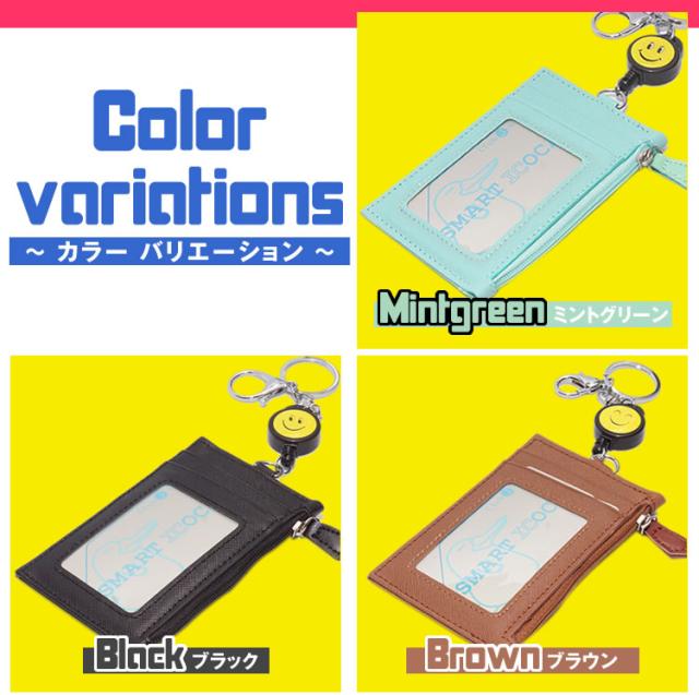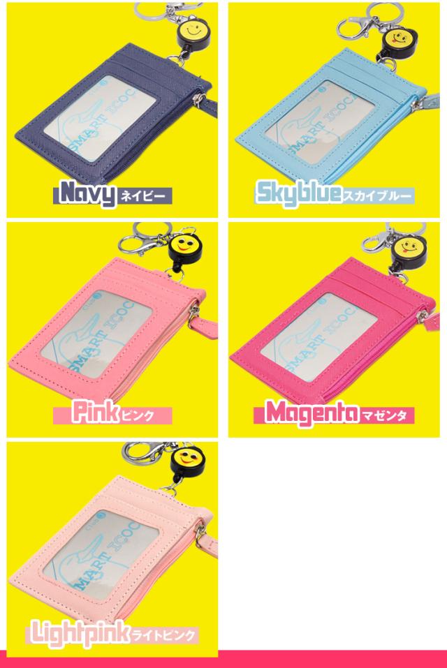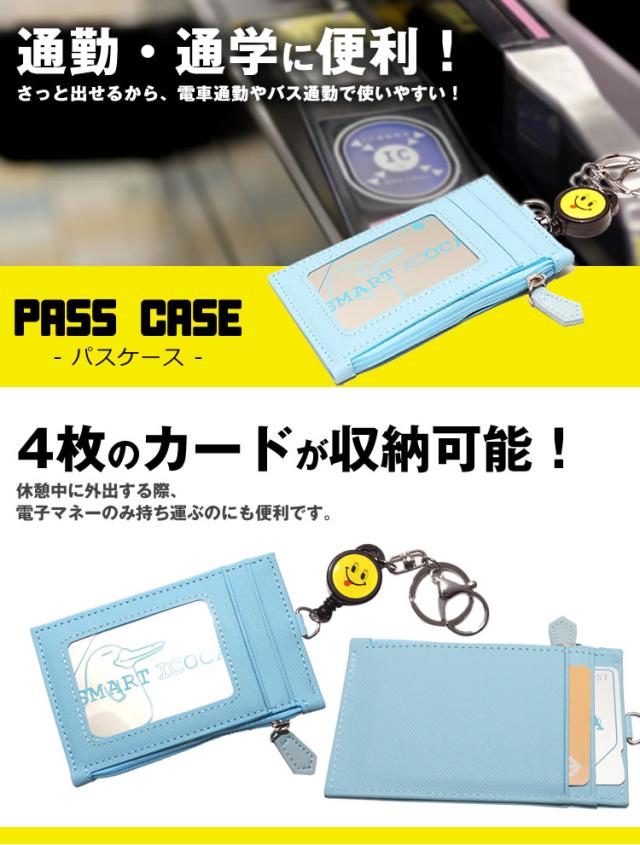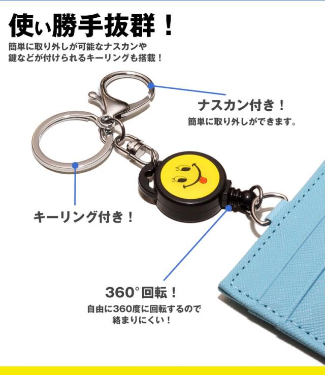 パスケース ICカードケース 定期入れ ニコちゃん マーク 伸縮 キーリール キーホルダー 付き 通勤 通学 小銭 ポケット