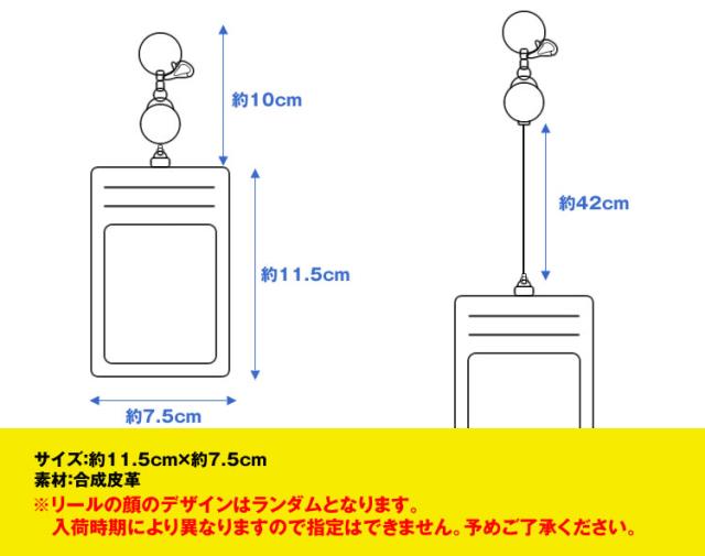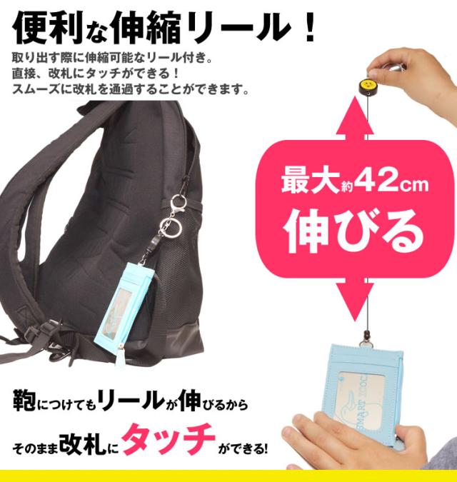 リールが伸びる 可愛い顔表情のリール付き パスケース 定期入れ