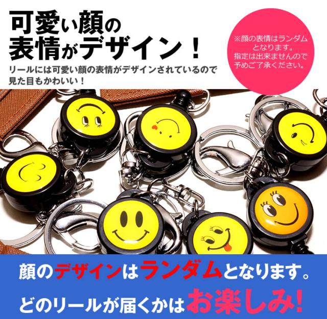 可愛い顔表情のリール付きのパスケースです。