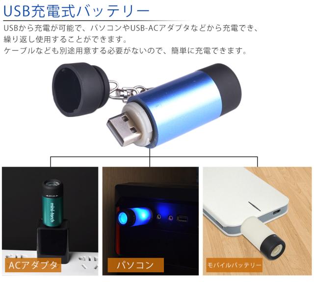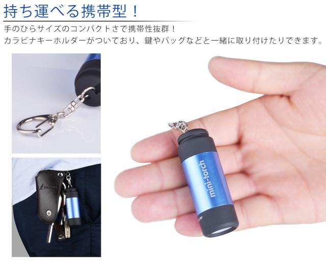 USB充電式 ミニライトUSB 防水 キーホルダー LED 高輝度 アウトドア 散歩 コンパクトキーチェーン カラビナ 軽量