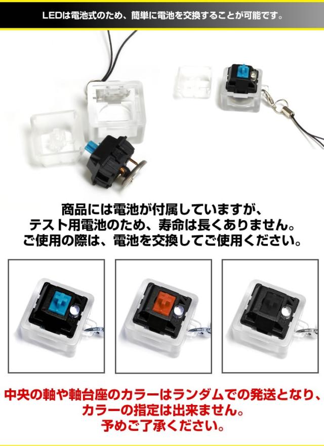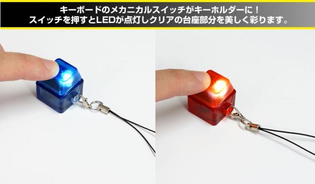 メカニカル スイッチ キーボード キーホルダー LED ライト ストラップ付き 携帯便利