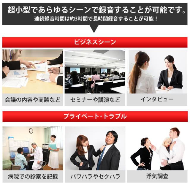 会議やセミナーなど長時間録音したい場合などにも便利です。