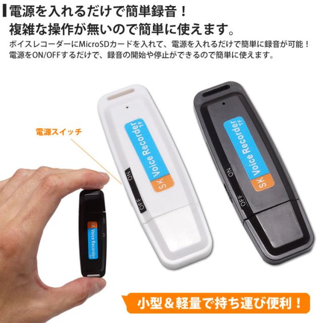 小型 MicroSDカード式 ボイスレコーダー ワンタッチ録音 録音 ICレコーダー 簡単操作 軽量 コンパクト