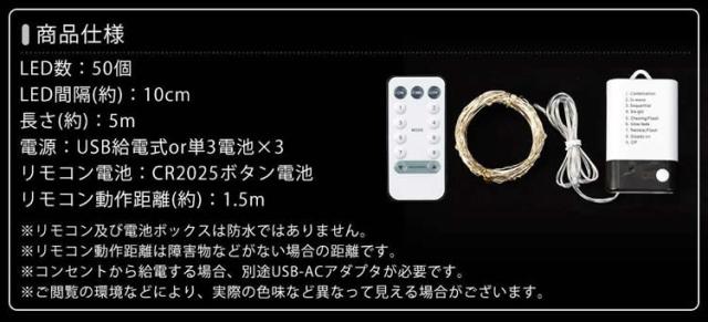 イルミネーションライト USB給電 電池駆動 LED ライト 防水 10段階 調光 装飾 電飾 クリスマス パーティー