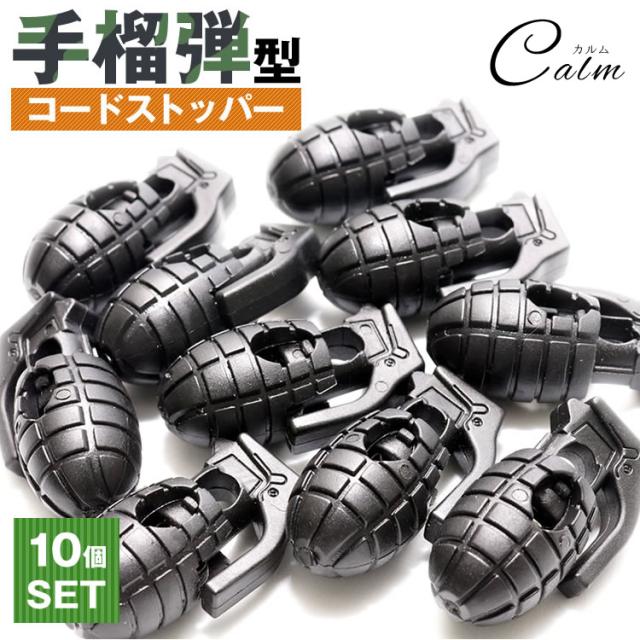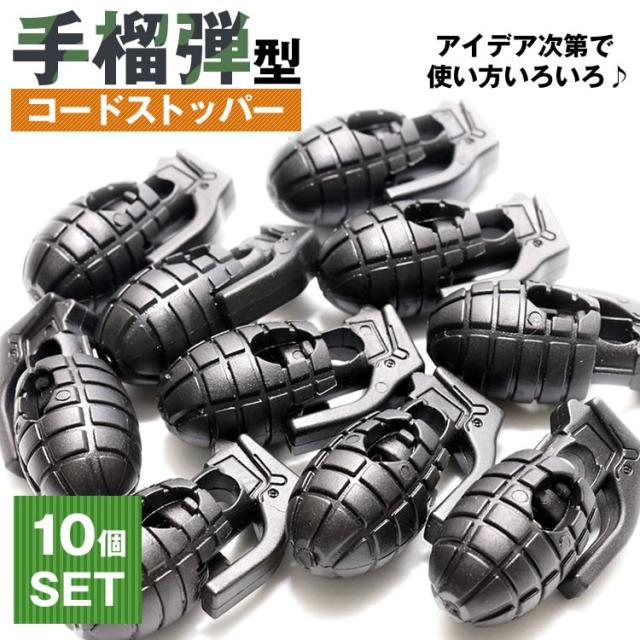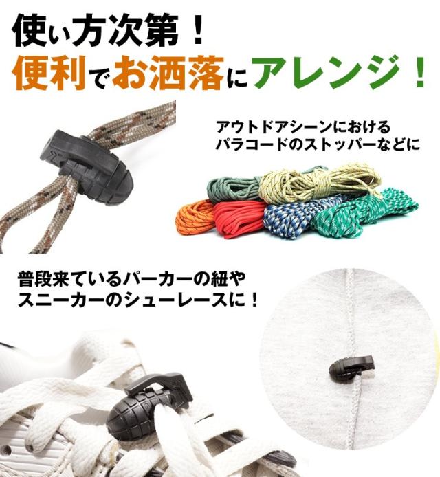 手榴弾型 コード ストッパー コード ロック 10個セット グレネード シューレース ロープ アウトドア サバゲー 衣類 靴ひも