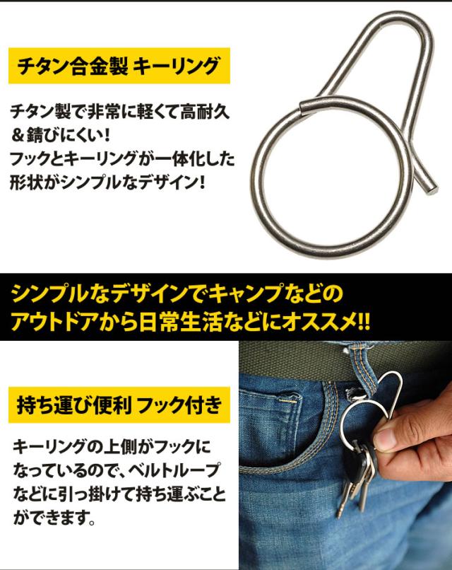 キーリング キーホルダー フック付き チタン合金 シンプル メンズ 鍵 スマートキー 軽量 アウトドア