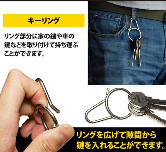 リング部分に家の鍵や車の鍵などを取り付けて持ち運ぶことができます。
