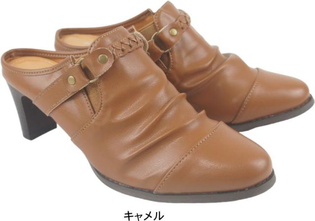 ミュール サンダル レディース おしゃれ ヒール 黒 シャーリング 前被り 前詰まり おすすめ 美脚 6 センチ cm 春 秋 冬 tk19970
