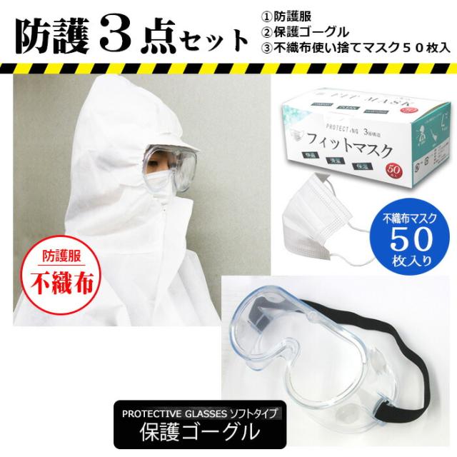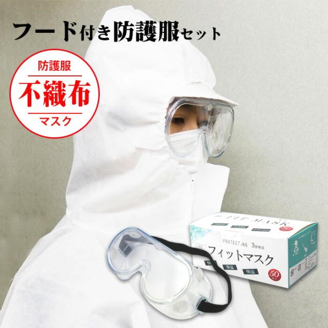 防護服セット 防護服 保護ゴーグル マスク 保護服 使い捨て 緊急事態 感染予防 感染対策 作業着 不織布 日本国内発送 白色 ホワイト Lサイズ XLサイズ 通気 掃除 汚れ防止 送料無料