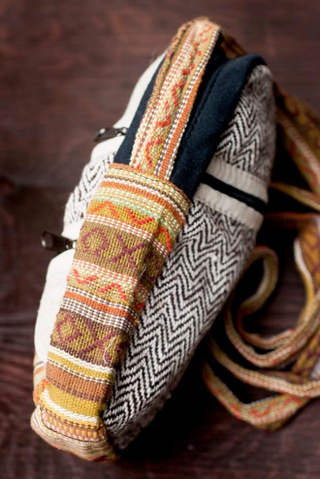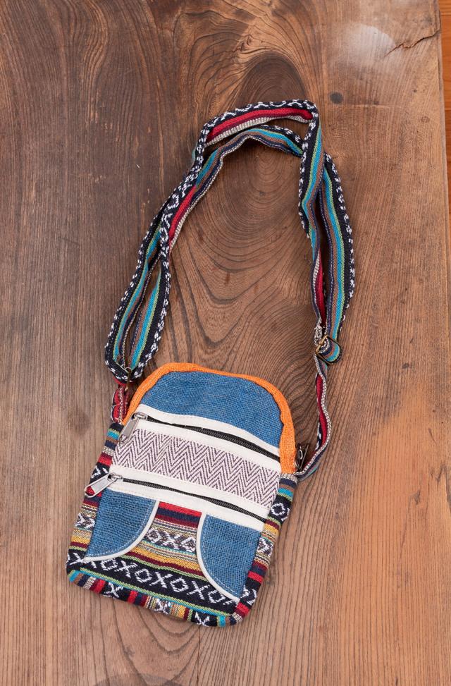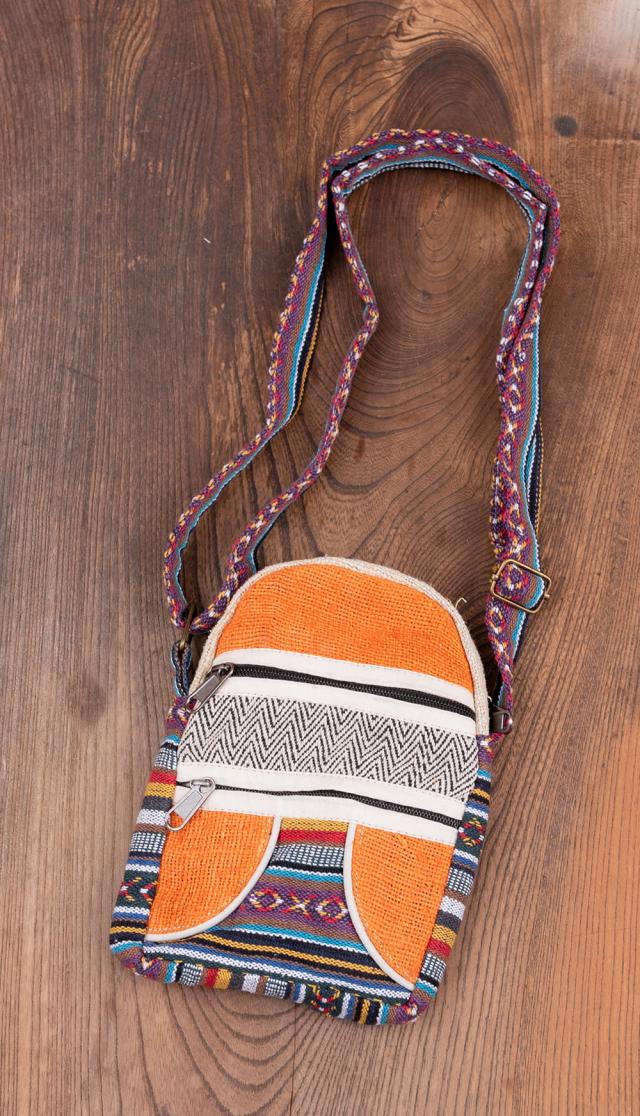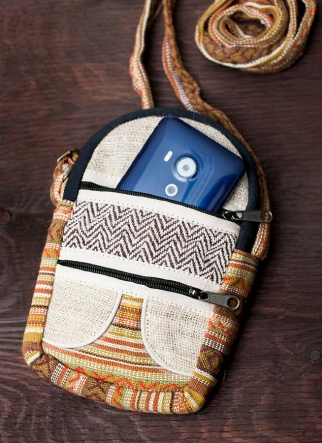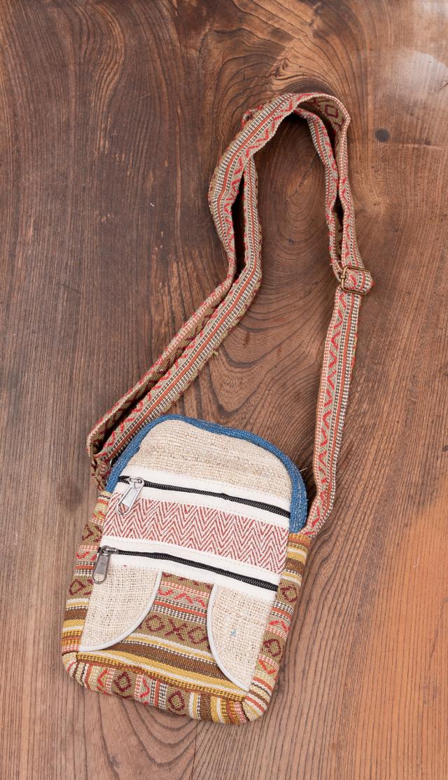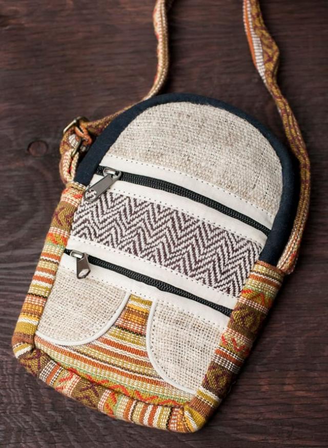 ヘンプとネパールゲリのポシェット / エスニック バッグ、ポーチ、ポシェット、バッグ、ミニバッグ、スマホ、ショルダーバッグ、ゲリ、 バッグ 【インドとアジアンバッグ