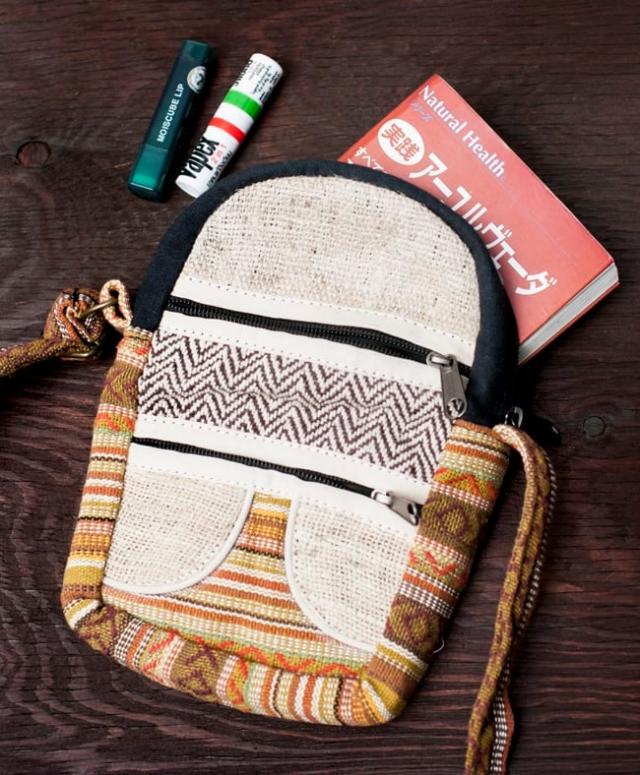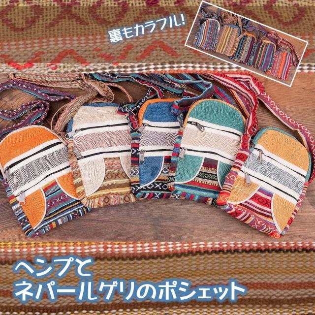 ヘンプとネパールゲリのポシェット / エスニック バッグ ポーチ ミニバッグ アジアン レディース インド
