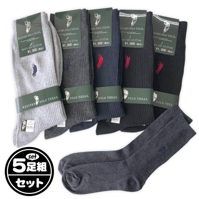 【送料無料】5足組セット メンズ 紳士 綿混素材 リブ 無地 クルー丈 ソックス 靴下 ビジネス カジュアル 25-27cm sp-0092【メール便対応】