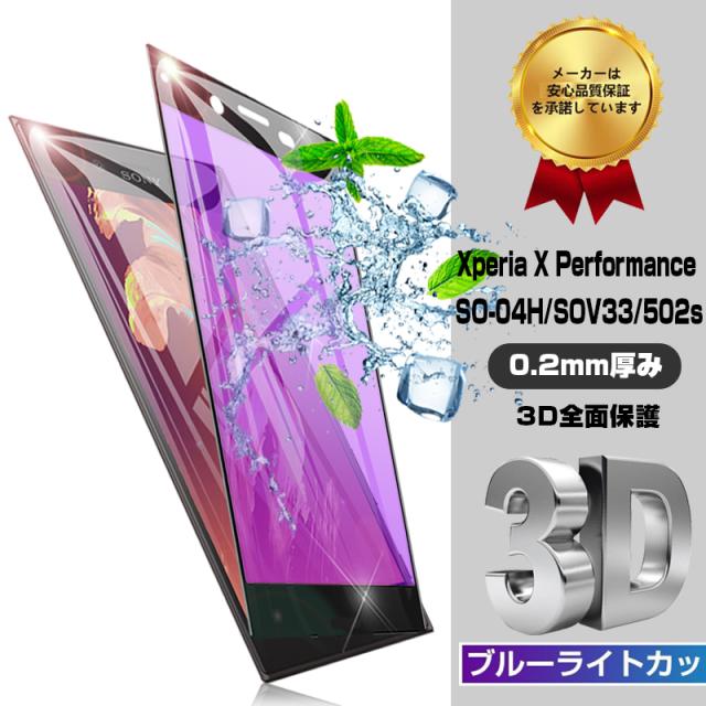 Xperia X Performance ブルーライトカット 3D全面保護 強化ガラス保護フィルム SO-04H 極薄0.2mm 全面ガラス保護フィルム