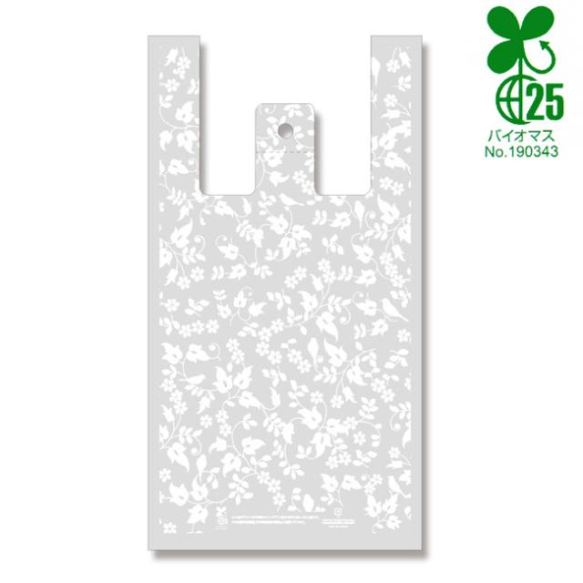 植物由来のバイオマス原料を25%配合した、環境配慮型のポリ袋です。主原料はサトウキビで、育成時の光合成でCO2を吸収するのでCO2の削減に貢献します。