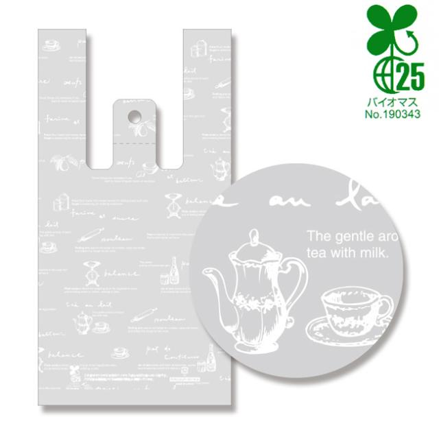 植物由来のバイオマス原料を25%配合した、環境配慮型のポリ袋です。主原料はサトウキビで、育成時の光合成でCO2を吸収するのでCO2の削減に貢献します。