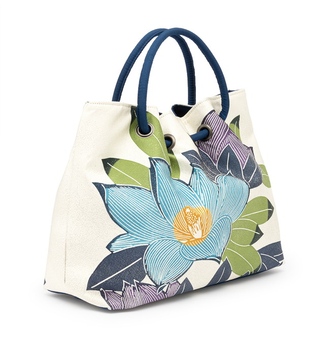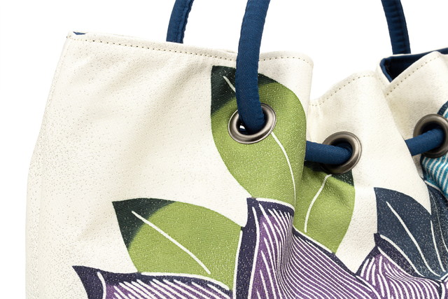 着物 バッグ レディース 栗山吉三郎 和染紅型 紅型染め 白系 ホワイト 青 紫 泰山木 和柄 絹 ラメ 西陣織 和洋兼用 鞄 バック 日本製 送料無料