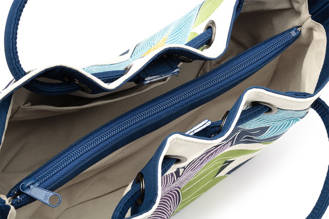 大容量のバッグの中は、ファスナー付きの大きなポケットが間仕切りとなっています。
