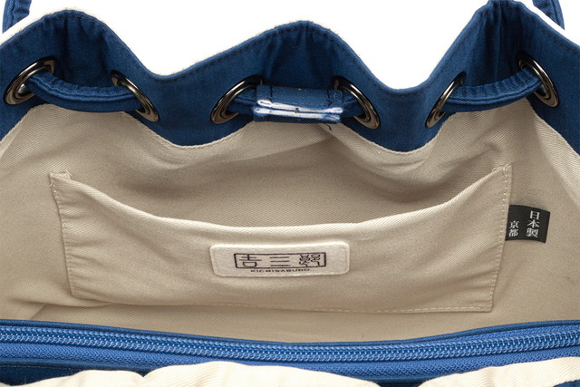 内部のポケットにはフェルトタイプの「吉三郎」タグが施され、底面には4点の底鋲が付いています。