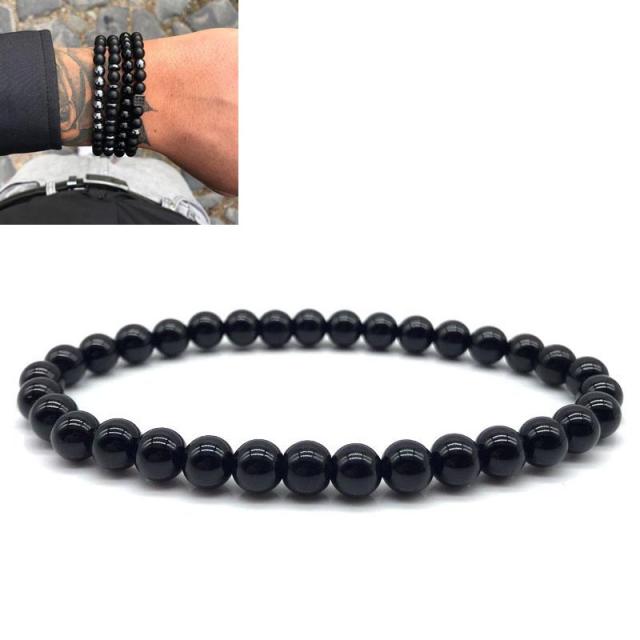 艶のある黒色ブラックの天然石オニキスのような丸いストーンをつなげた数珠のようなブレスレット。