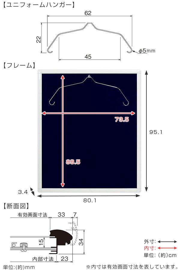 ユニフォーム 収納 ユニフォーム額 L201 フレーム ホワイト Mサイズ ( 額 ディスプレイ 額縁 ユニフォームケース M 壁掛け コレクション ディスプレイケース バックボード 7色 飾る ハンガー Tシャツ 額装 インテリア )