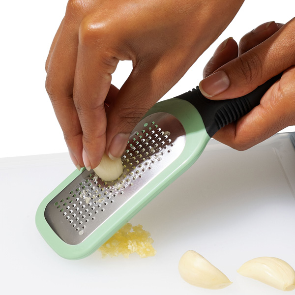 目詰まりしやすい生姜やニンニクなどもきれいにおろせるグレーターです。使いやすい小ぶりなサイズと、手になじむやわらかく握りやすいハンドルで操作性も抜群です。引き出しの中でもかさばらないサイズ感です。