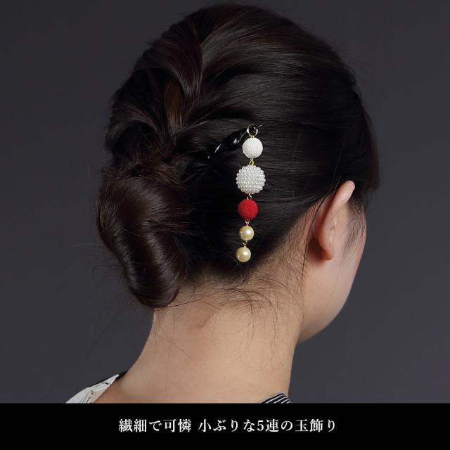 ゆかたやきものぴったりのちりめん玉飾り付きのかんざし