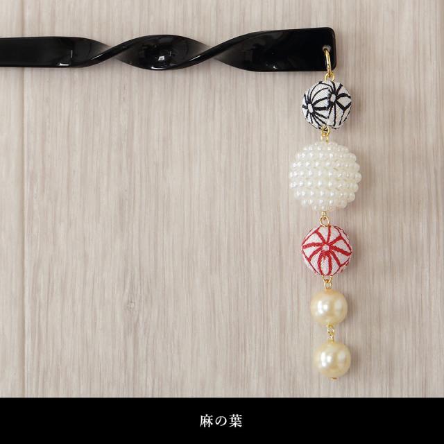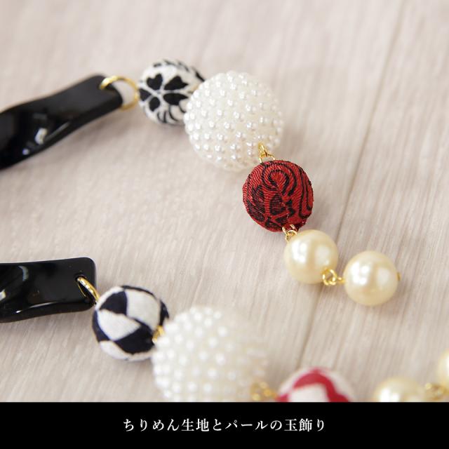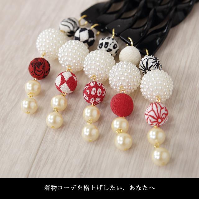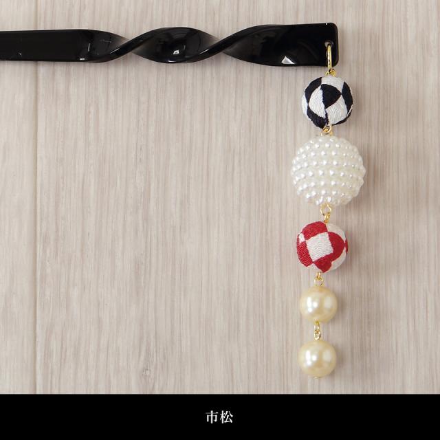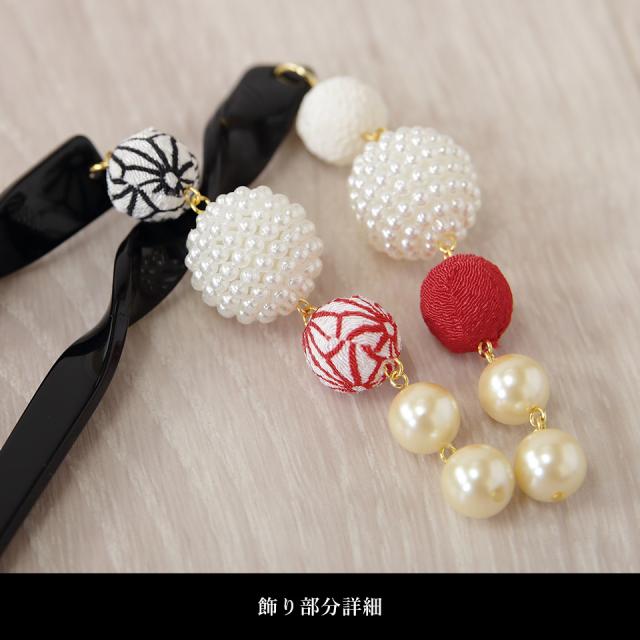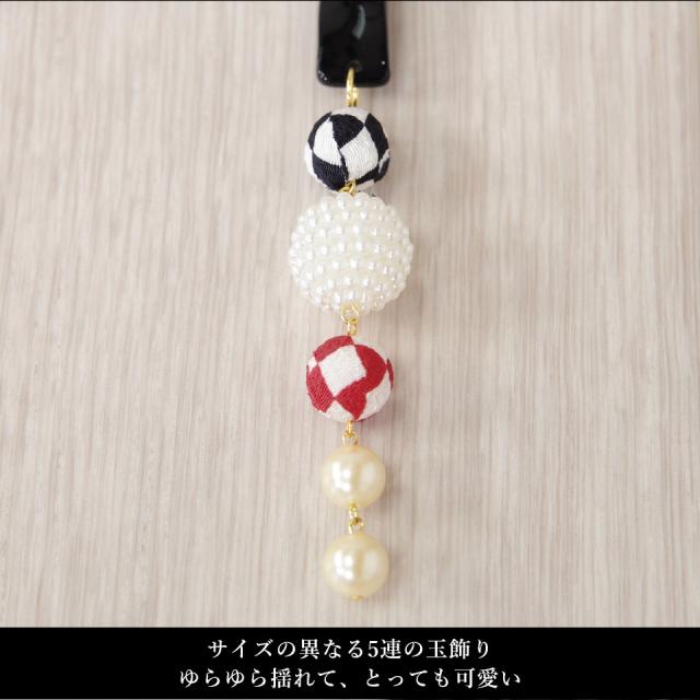 サイズの異なる玉飾り(ちりめん生地・パール)が揺れてとっても可愛い!