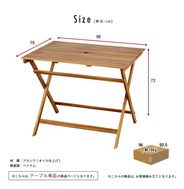 折りたたみテーブル Byron(バイロン) 90x70cm NX-903 ガーデンテーブル 木製テーブル テーブル レジャーテーブル ガーデンファニチャー 折りたたみ カフェ 庭 テラス 屋外 アウトドア パラソル使用可 おしゃれ