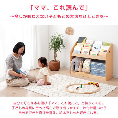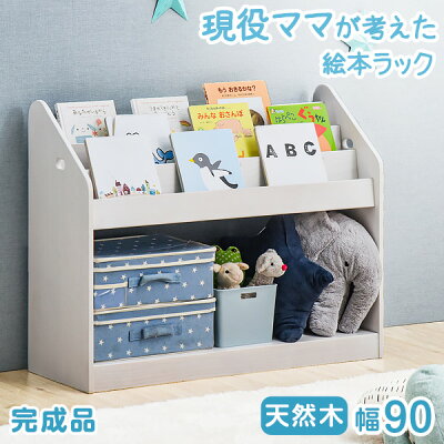 絵本ラック 本棚 現役ママが考えた絵本ラック! 幅90 ワイドタイプ 大容量 完成品 天然木 3段 キッズ 絵本 ラック 子供用絵本ラック おもちゃ 書棚 収納ラック 木製 おしゃれ 子ども家具 お片づけラック