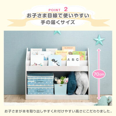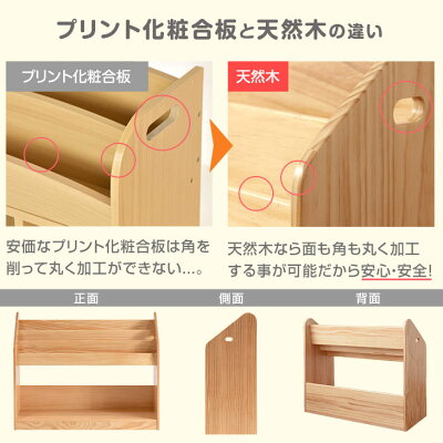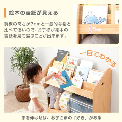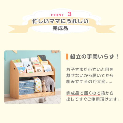 絵本棚 完成品 3段 高さ70×幅90 天然木 ディスプレイ 本棚 絵本 ラック 収納 3段タイプ 子供 取っ手 収納棚 おしゃれ 家具 キッズ家具 おもちゃ おもちゃ収納 無垢 こども 薄型 誕生日【商品番号:64900004】