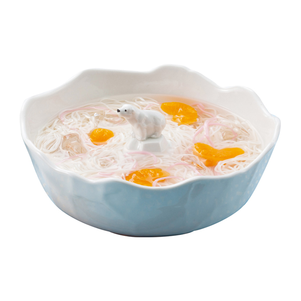 ホッキョクグマの周りにそうめんを盛って楽しく美味しくいただけます。そうめんだけでなく、そばやうどんを盛り付けるのにちょうど良い器。お祝いや夏の贈り物としてもおすすめです。