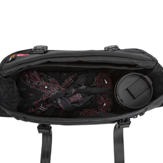 メインコンパートメントはマチが広く、お弁当やタンブラーなど入れていただけます。500mlのペットボトルも収納可能です。