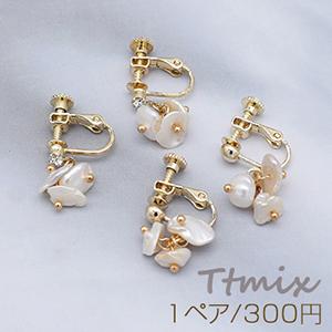 淡水パールイヤリング 3連 4mm玉/ストーン付きイヤリング【1ペア】